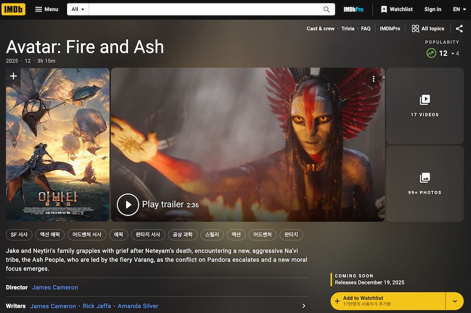 아바타3 쿠키영상 추가장면 없음