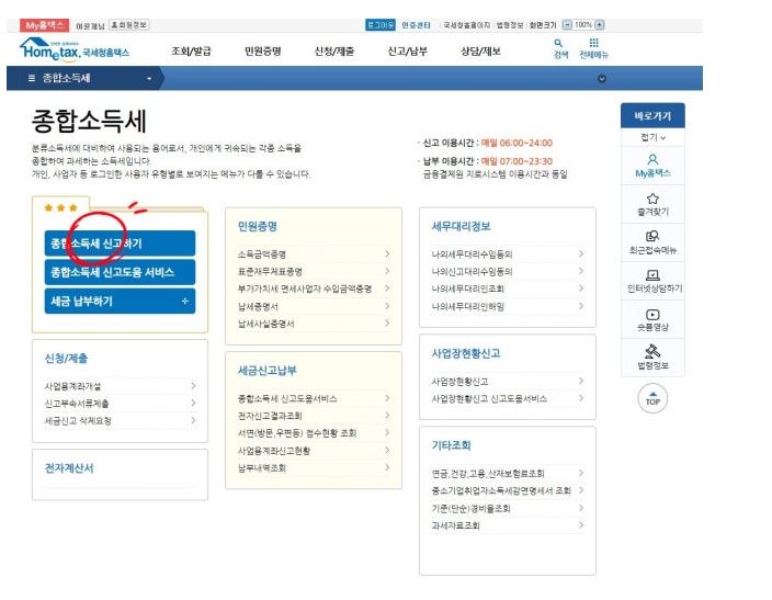 종합소득세는 국세청 홈택스 입니다
